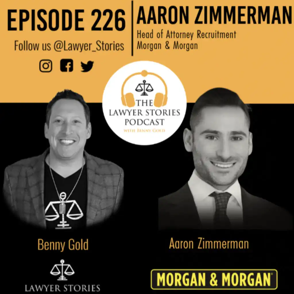 The Lawyer Stories Podcast episode 226 welcomes Aaron Zimmerman, the Head of Attorney Recruitment at Morgan & Morgan. Aaron shares his journey from Harvard Law School—where he was a member of the Harvard Defenders—to his current role recruiting top trial attorneys for one of the largest plaintiffs' firms in the country. Before attending Harvard, Aaron made the strategic decision to defer his admission and work as a legal headhunter at a boutique recruiting firm. There, he trained under two veteran legal recruiters and led litigation placements. This formative experience gave him deep insight into the career trajectories of litigators, helping him understand both immediate and long-term professional pathways in the legal field. As an executive recruiter, Aaron interviewed and placed hundreds of attorneys into prestigious AmLaw 100 firms both domestically and internationally. Now, he brings that wealth of experience to Morgan & Morgan, passionately working "For the People" by ensuring the firm is staffed with the best trial attorneys available.