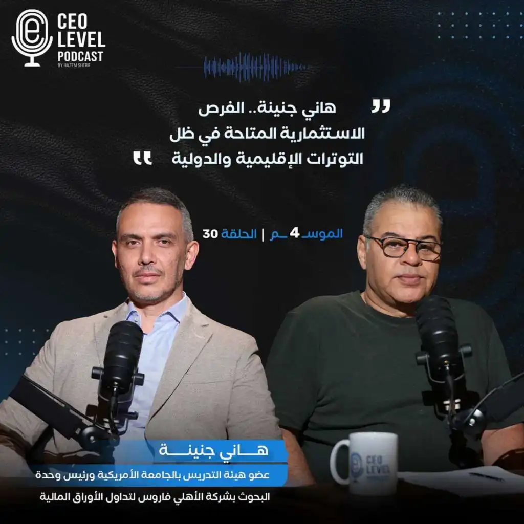 هاني جنينة عضو هيئة التدريس بالجامعة الأمريكية ورئيس وحدة البحوث بشركة الأهلي فاروس لتداول الأوراق المالية، ضيفًا على حازم شريف، في CEO Level Podcast. يتحدث "جنينة"، عن تقييمه لأداء البورصة المصرية وتوقعاته لعدد من القطاعات، وأين يضع المستثمرون أموالهم في الوقت الحالي ؟! ويكشف عضو هيئة التدريس بالجامعة الأمريكية عن فرص مصر في الاستفادة من الأزمات العالمية والإقليمية، ومستقبل قطاعات الموانئ والسياحة والعقارات. وتتناول الحلقة المثيرة والمتشعبة مع هاني جنينة حركة الأموال الساخنة في السوق المصرية...