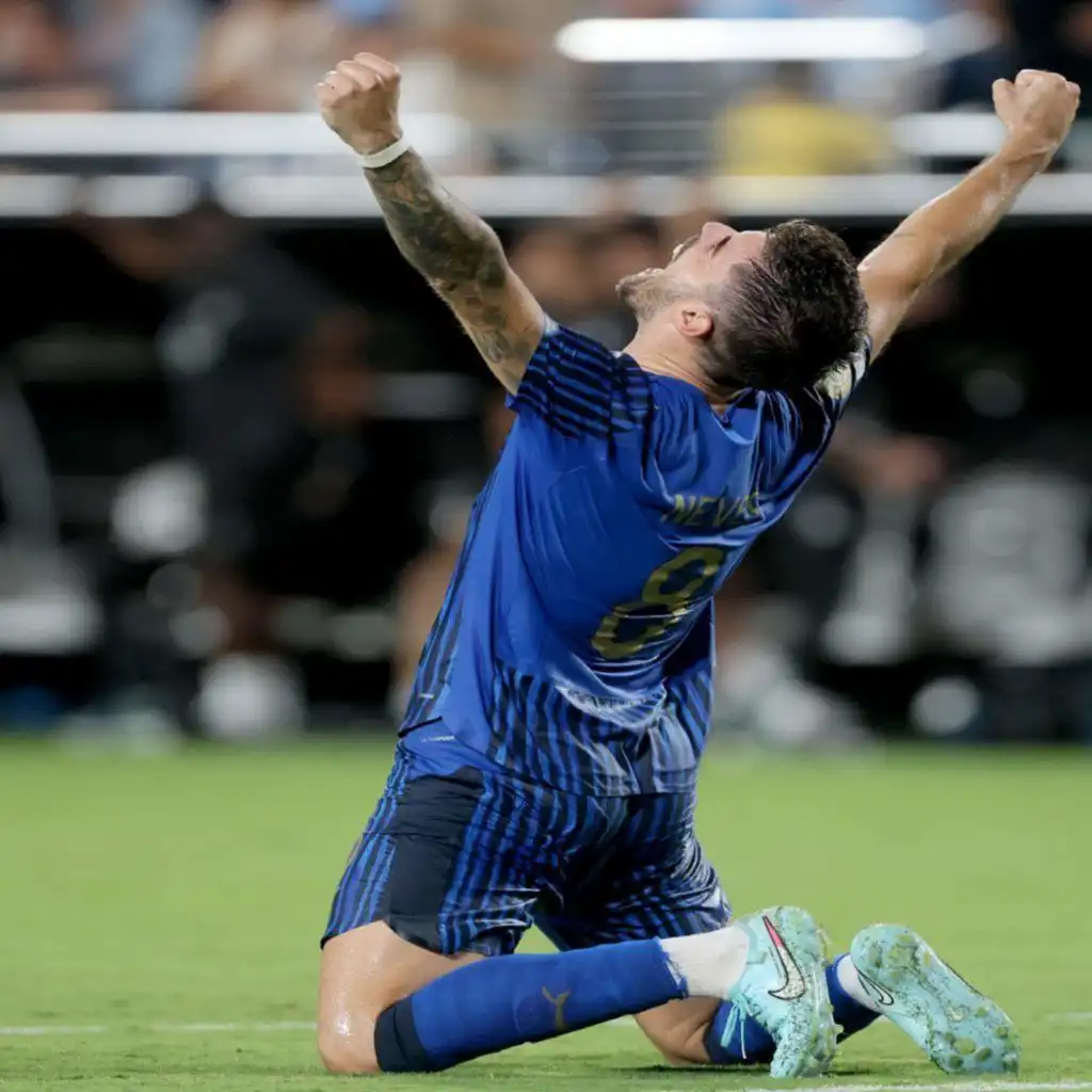 PHOTO: ORLANDO, FLORIDA - JUNE 30: Ruben Neves of Al Hilal celebrates after the win at the FIFA Club World Cup 2025 round of 16 match between Manchester City and Al-Hilal at Camping World Stadium on June 30, 2025 in Orlando, Florida. (Photo by Richard Sellers/Sportsphoto/Allstar via Getty Images)
