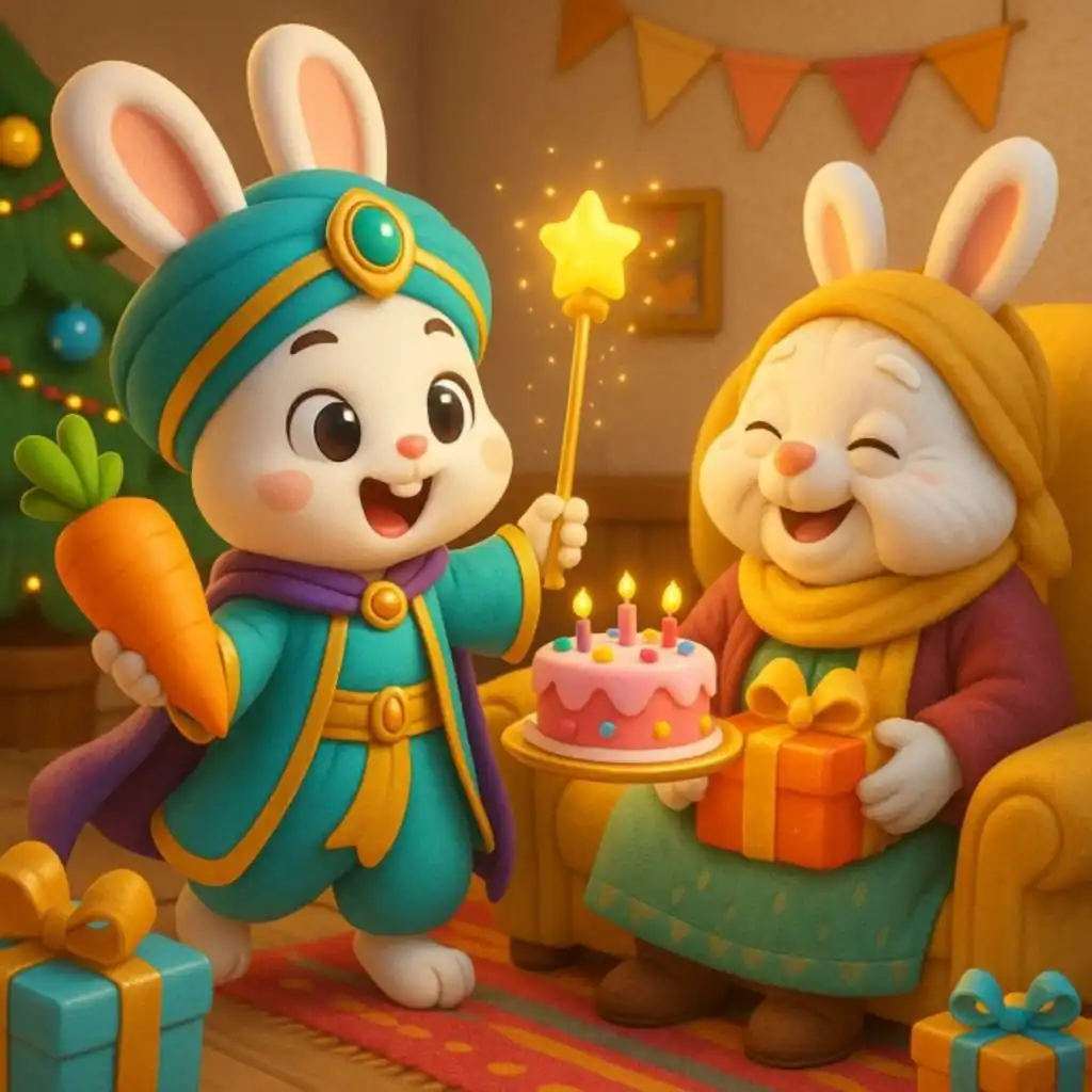 <div dir="rtl">🎁🐰✨تخيّلوا أرنوبة تتحوّل إلى عملاقة… ثم إلى أسد… ثم إلى أرنبة خارقة معها جزرة سحرية! 😲🦁🥕