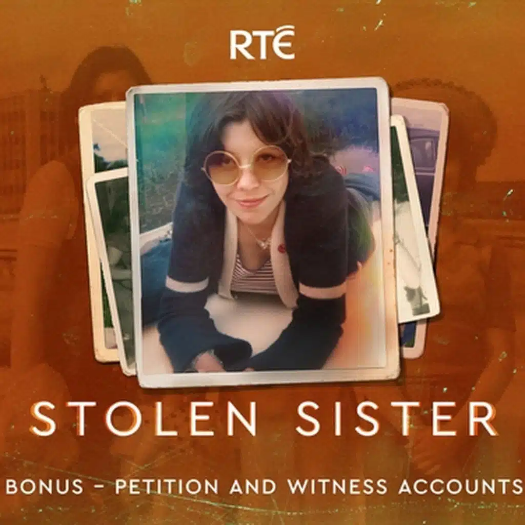 Credits: Stolen Sister is written and produced by Nicoline Greer with production assistance from Shauna McGreevy. Roz Purcell is the host. Original music soundtrack performed and composed by Oscar-winning composer Stephen Warbeck, together with the RTÉ Concert Orchestra. Sound design and orchestra recording by Ciarán Dunne. The executive producer is Liam O’Brien. Audio Product Support by Nigel Wheatley. Marketing by Maria Buckley and Christopher Hayes. Design and creatives by Darragh Treacy. Publicity by Sarah Neville. Sales by Graeme Bailey and additional online editorial content by Anna Joyce.