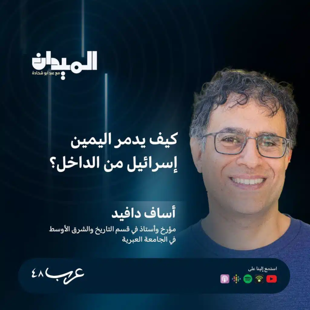 <div dir="rtl">في الحلقة رقم 195 من بودكاست الميدان، استضفنا الدكتور أساف دافيد، باحث ومحاضر في الجامعة العبرية ومعهد فان لير في القدس، في حوار معمّق حول التحولات السياسية والاجتماعية التي تمرّ بها المجتمع الإسرائيلي، ونجاح اليمين الاستيطاني في الهيمنة على السياسة والخطاب العام في إسرائيل.