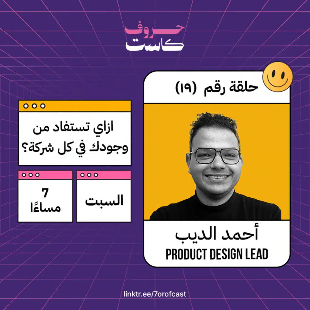 حلقة جديدة ومختلفة من نوعها ولأول مرة في حروف كاست هنتكلم عن الـ UX writing مع ندى النادي.وهي من أوائل الناس اللي ابتدوا في مجال الـ UX writing في مصر، واللي كان وقتها لسه مبقاش تخصص منفصل عن الـ copywriting..اتخرجت من الـ AUC وبدايتها كانت في الكونتنت بأشكالة المختلفة لحد ما دخ ... Show More