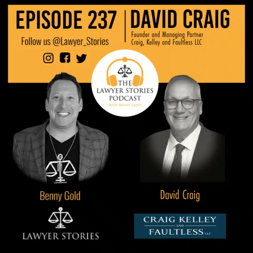 The Lawyer Stories Podcast Episode 237 features David Craig, Founder and Managing Partner at Craig, Kelley & Faultless, LLC in Indianapolis, Indiana. David shares insights from decades of advocating for injury victims and dives into his new book, It's Never Been Easier to Hire the Wrong Attorney, which helps clients navigate today's legal landscape to make informed choices.