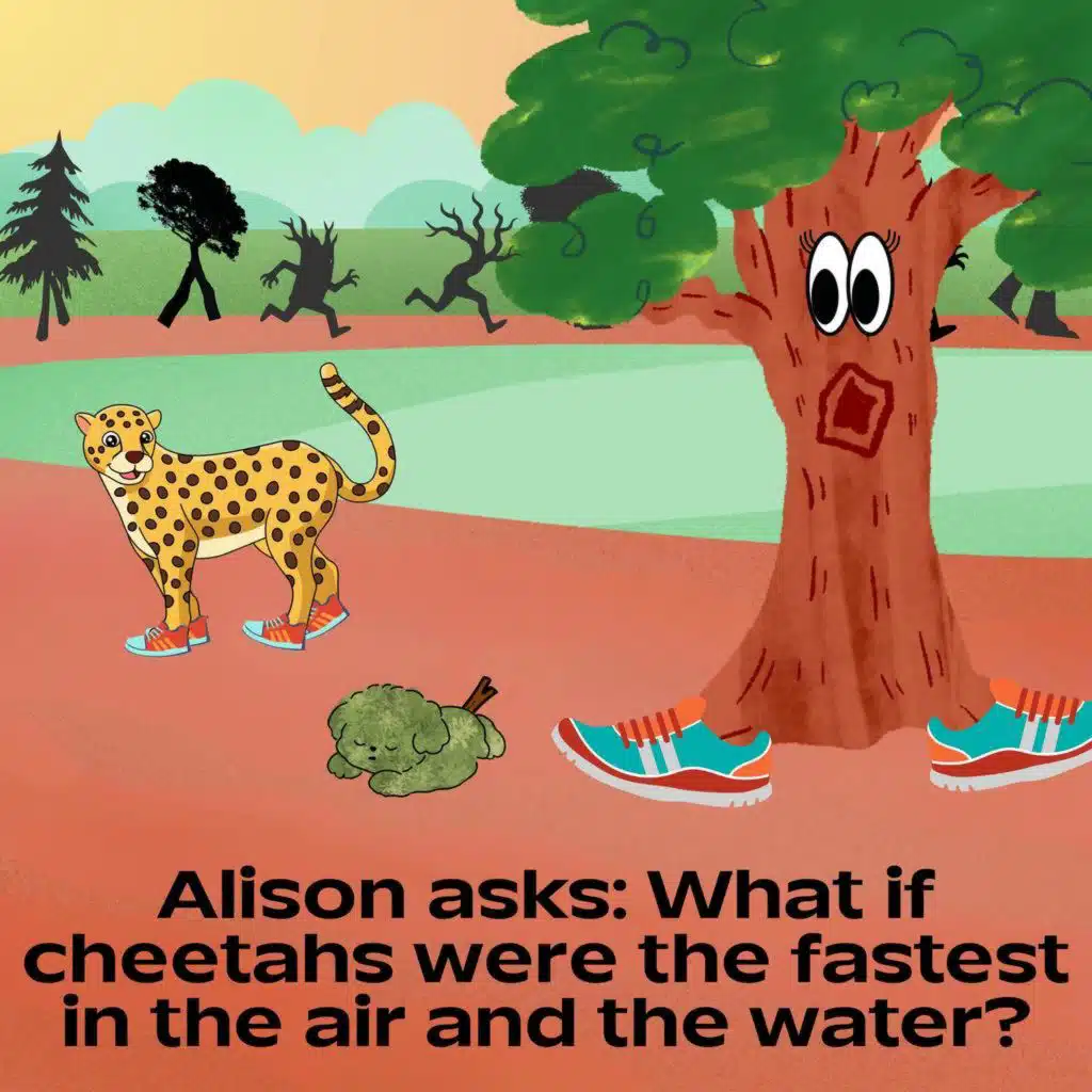 Fast Alice, the fastest cheetah in the universe, adopts a baby tree-dog. As the dog grows up and Alice grows old, she finds that she isn’t so fast anymore.