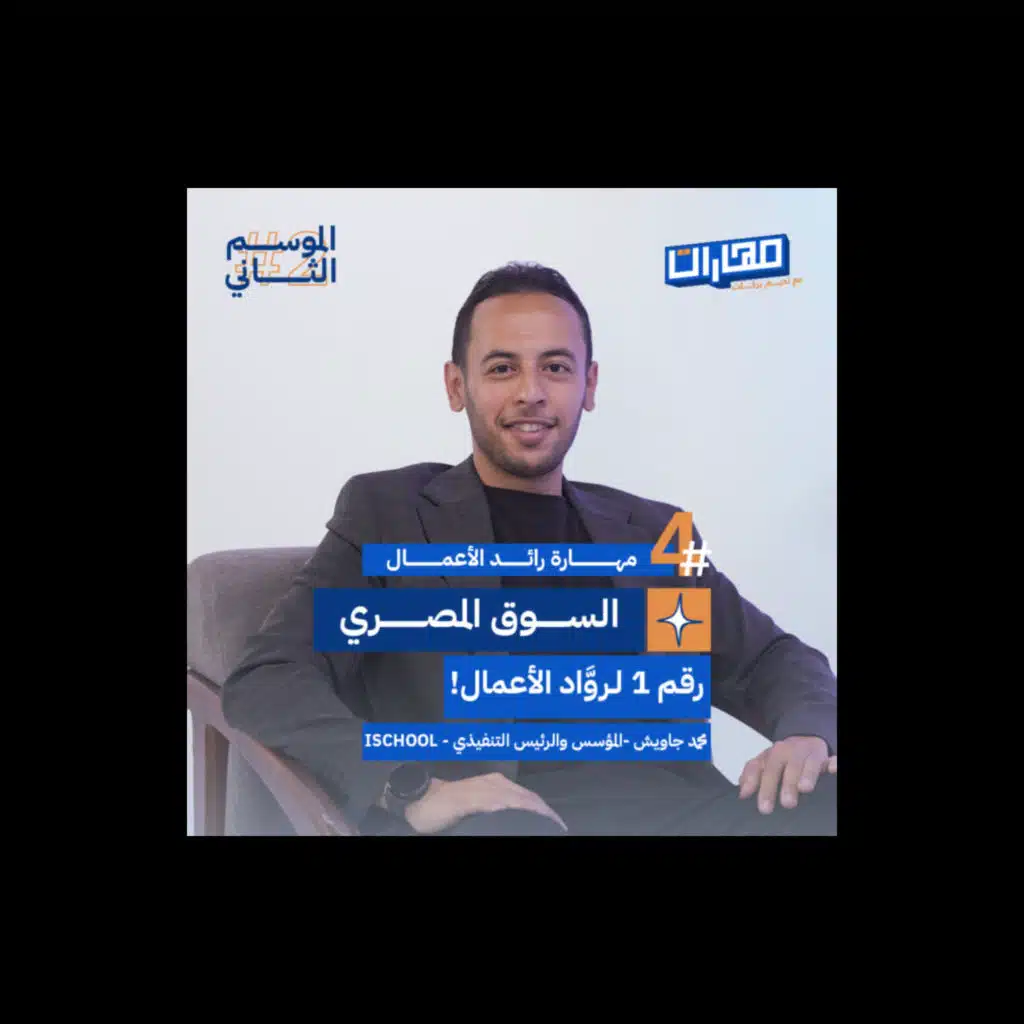 في رابع حلقة من الموسم الثاني من بودكاست مهارات مع نديم بركات، نستضيف محمد جاويش؛ المؤسس والرئيس التنفيذي لـ "آي سكوول" للحديث عن رحلته في ريادة الأعمال في مجال التعليم، تجربته في السوق المصري، ورأيه في التوسُّع لأسواق خارجية. البودكاست فكرة وتقديم نديم بركات، ومن إعداد وإنتاج مدار.