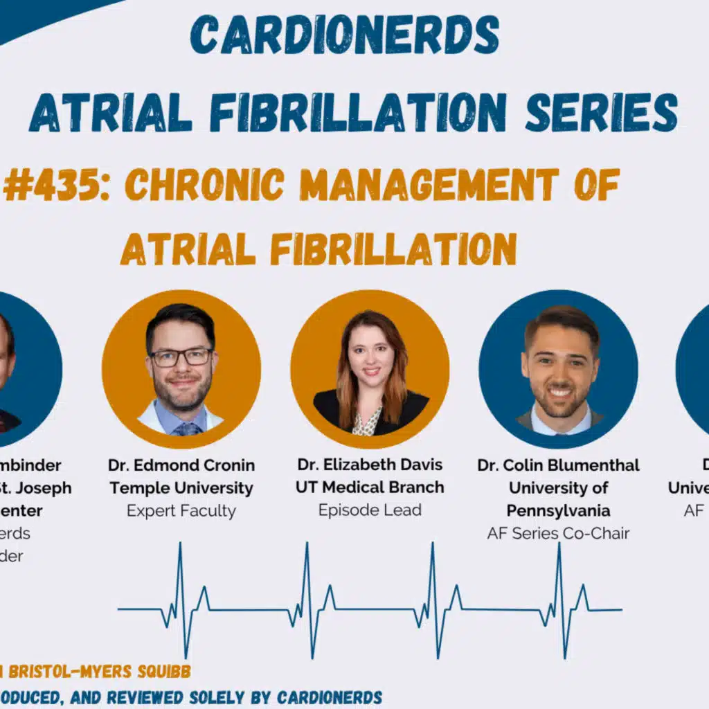 CardioNerds (Dr. Kelly Arps, Dr. Naima Maqsood, and Dr. Elizabeth Davis) discuss chronic AF management with Dr. Edmond Cronin. This episode seeks to explore the chronic management of atrial fibrillation (AF) as described by the 2023 ACC/AHA/ACCP/HRS Guideline for the Diagnosis and Management of Atrial Fibrillation: A Report of the American College of Cardiology/American Heart Association Joint Committee on Clinical Practice Guidelines. The discussion covers the different AF classifications, symptomatology, and management including medications and invasive therapies. Importantly, the episode explores current gaps in knowledge and where there is indecision regarding proper treatment course, as in those with heart failure and AF. Our expert, Dr. Cronin, helps elucidate these gaps and apply guideline knowledge to patient scenarios. Audio editing for this episode was performed by CardioNerds intern Dr. Bhavya Shah.
