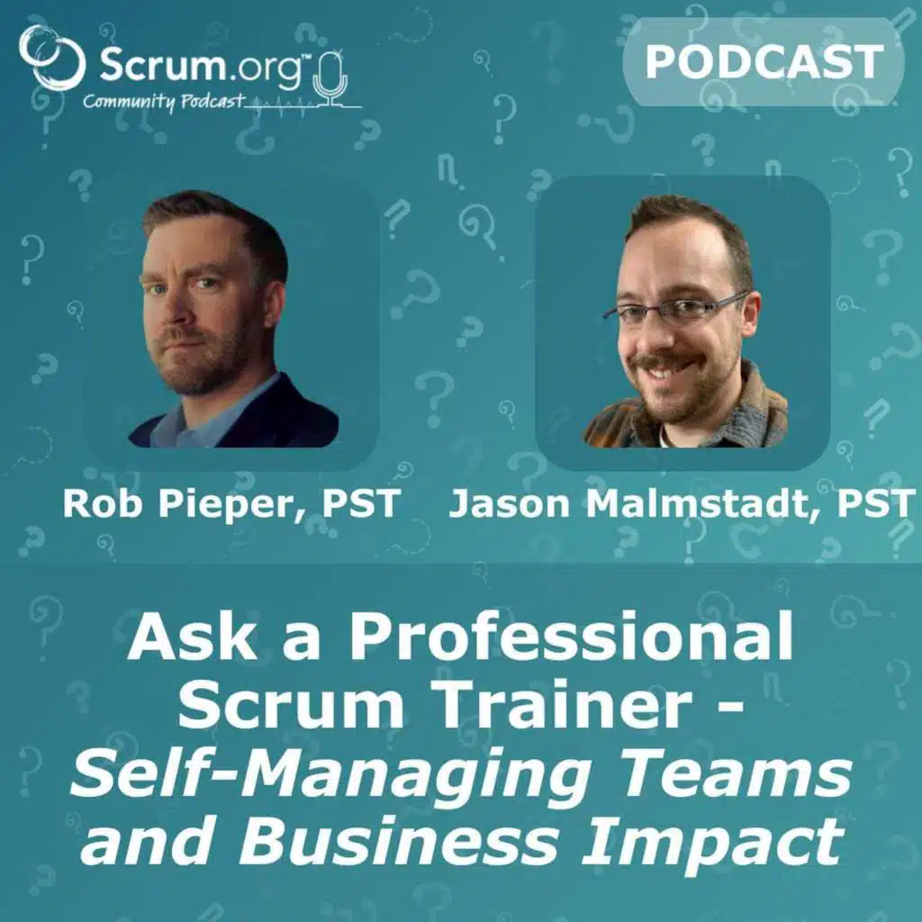 In this Scrum.org Community Podcast episode, Lindsay Velecina from Scrum.org sits down with Robb Pieper and Jason Malmstadt of Responsive Advisors to answer the real, practical questions practitioners have about self-management in Scrum in a live Ask a PST session. Listeners submitted questions like: How do you get management to support self-management?Wha ... Show More