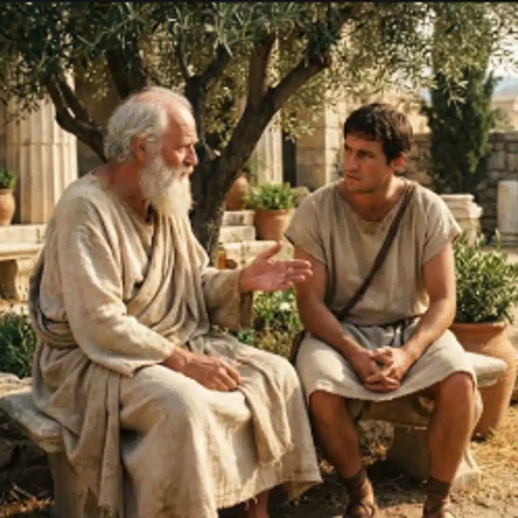 Hacer click aquí para enviar sus comentarios a este cuento. Juan David Betancur Fernandez elnarradororal@gmail.com Habia una vez un Viejo maestro que veía como tarde caía sobre Atenas y el sol teñía de naranja las columnas de piedra. Aquel filosofo con la barba blanca estaba plácidamente descansando sobre su túnica y tenía su mirada perdida en la contempla ... Show More