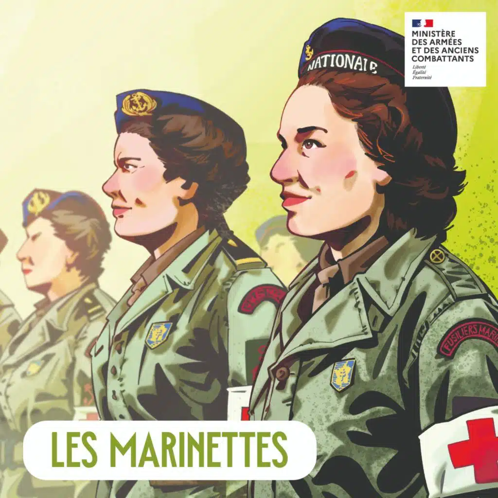 Le Ministère des Armées et des Anciens combattants te présente un groupe de femmes au destin exceptionnel : les Marinettes, héroïnes oubliées de la Seconde Guerre mondiale. Parmi elles se sont distinguées des femmes hors du commun comme Jacqueline Carsignol, Monique et Jacqueline Bardet, Cécile de Jerphanion, Françoise La Chassagne de Polignac, Jeanne Andrei, Jacqueline Cadoret, Yolaine Dagnon et Marie-Louise Courbary.