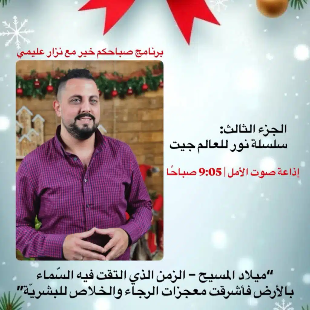 ترتكز رسالتنا في هذا اليوم على عدّة آيات من الكتاب المقدس وخاصةً من انجيل متى ولوقا ويوحنا، وذلك من خلال سلسلة نور للعالم جيت، التي نُكمل بها اليوم في موسم زمن الميلاد المجيد..اليوم في الجزء الثالث تأملنا في صاحب العيد يسوع المسيح وتحدثنا حول “ميلاد المسيح – الزمن الذي التقت فيه السّماء بالأرض فأشرقت معجزات الرجاء والخلاص للبشريّة”جاء والخلاص”..