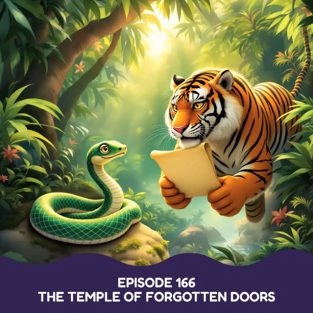 And what an adventure it is! Deep in a jungle where trees tickle the clouds, clever Sari the snake and gentle Rajan the tiger discover an ancient map leading to the legendary Temple of Forgotten Doors. Inside, they find a garden blooming with flowers in colors that haven't been seen in a hundred years—silver and copper, midnight blue and sunrise gold! But when a door mysteriously seals shut behind them, our friends must work together to escape. Sari's sharp eyes notice important clues, while Rajan discovers that sometimes the gentlest touch is stronger than all the muscles in the world.