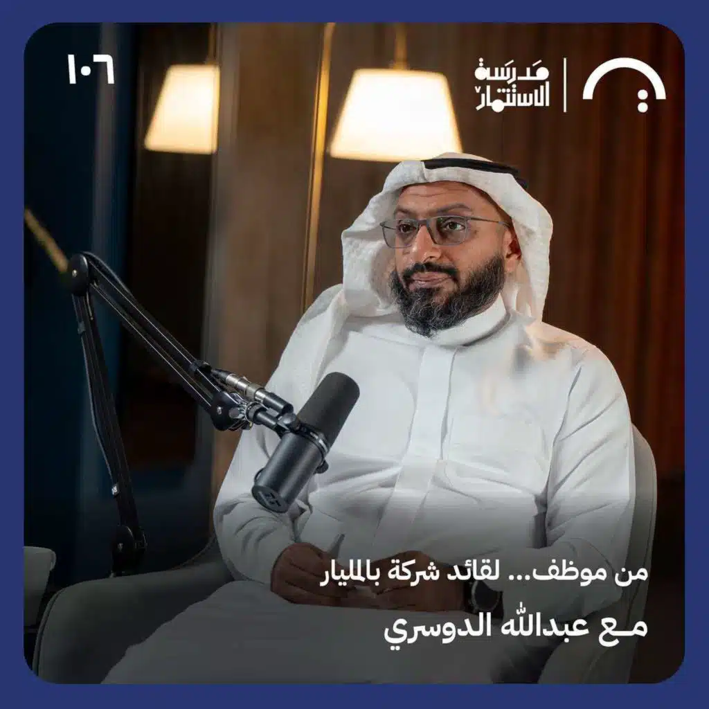 في حلقة غنية بالتجارب العملية من بودكاست مدرسة الاستثمار نستضيف عبدالله الدوسري، مؤسس شركة T2، واحدة من أهم الشركات السعودية اللي تجاوزت قيمتها المليار ريال بدون مستثمرين وبدون ممولين خارجيين — فقط بالتركيز والالتزام وبناء فريق قوي من الصفر. في الحلقة دي بنغوص في: كيف بدأ عبدالله طريقه من الجامعة وهو لسه مش لاقي شغفه؟ ازاي اكتشف مجاله الحقيقي؟ أهم لحظة في حياته المهنية واللي غيرت مسار تفكيره بالكامل. ليه الثقافة الداخلية للشركة هي أهم عنصر في النمو؟ كيف توزّع المهام بين فريق فول تايم وبين ثير...