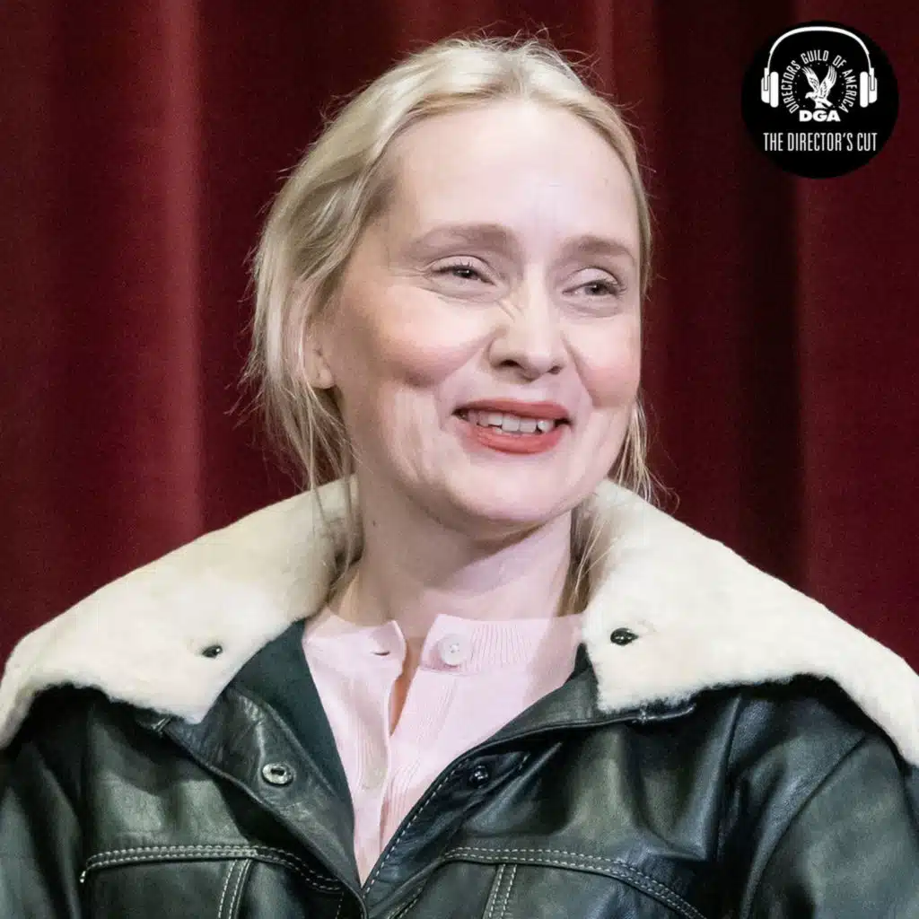 Director Mona Fastvold discusses her new film, The Testament of Ann Lee, with fellow Director Darius Marder in a Q&A at the DGA theater in New York. In the conversation, she discusses how her background in movement and dance contributed to the choreography, the logistics of shooting the barn burning scene, and how she aimed to show authentic moments of woman ... Show More