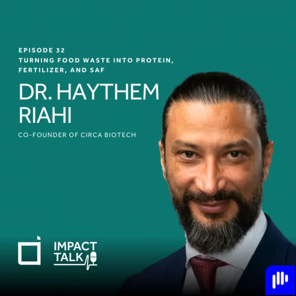 In this episode of Impact Talk, host Nadine Zidani sits down with Dr. Haitham Al Riahi, Co-Founder of Circa Biotech, to explore how nature-based biotech can transform organic waste into valuable resources — creating both environmental and economic impact.