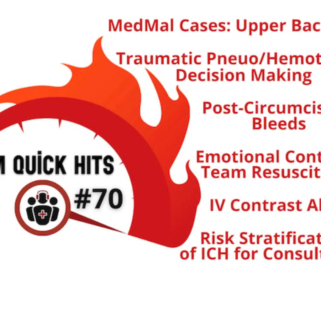 In this month's EM Quick Hits podcast: Mike Weinstock discusses with Anton a case of upper back pain in this month's Medmal Cases, Andrew Petrosoniak on traumatic pneumothorax and hemothorax decision making: risk stratification, imaging cutoffs and chest tube choices, Justin Morgenstern on brain injury guidelines risk stratification for neurosurgical consult ... Show More