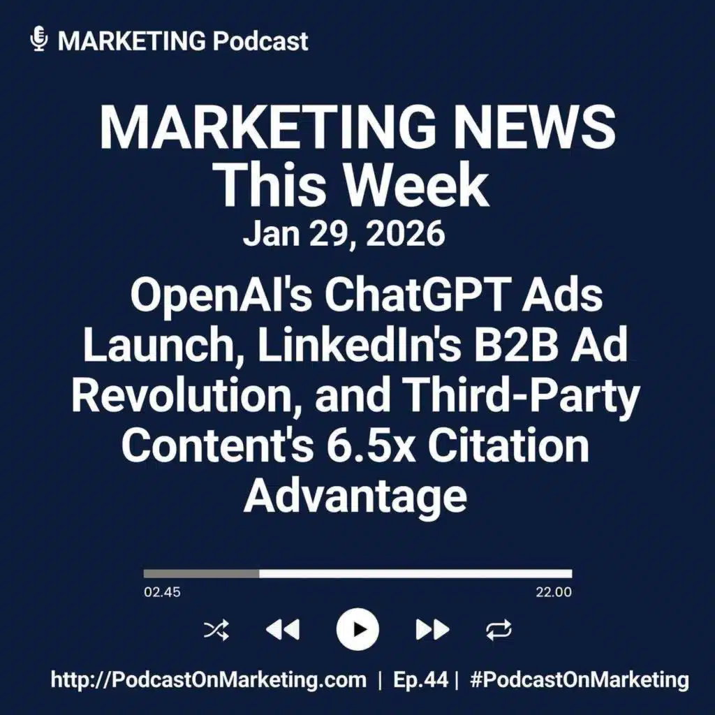 This is your Marketing News update for the week of January 27th, 2026. We’ve got 3 major marketing stories for you: ChatGPT made a move that changes where ads show up. LinkedIn created an ad product that makes B2B advertising predictable for the first time. And AirOps published research that's going to force you to rethink everything about your brand visibil ... Show More