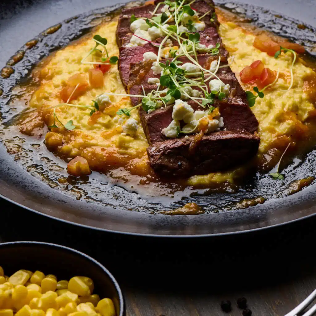 A beautifully executed hanger steak dish, rich, balanced, and precise