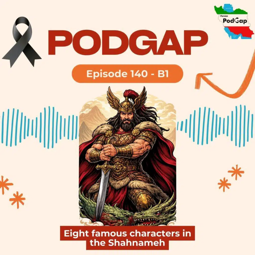 In this episode, we talk about 8 famous characters from Ferdowsi’s Shahnameh.You’ll get to know these characters, and in each section we’ve included a few selected verses from the Shahnameh to give you a feel for the book.