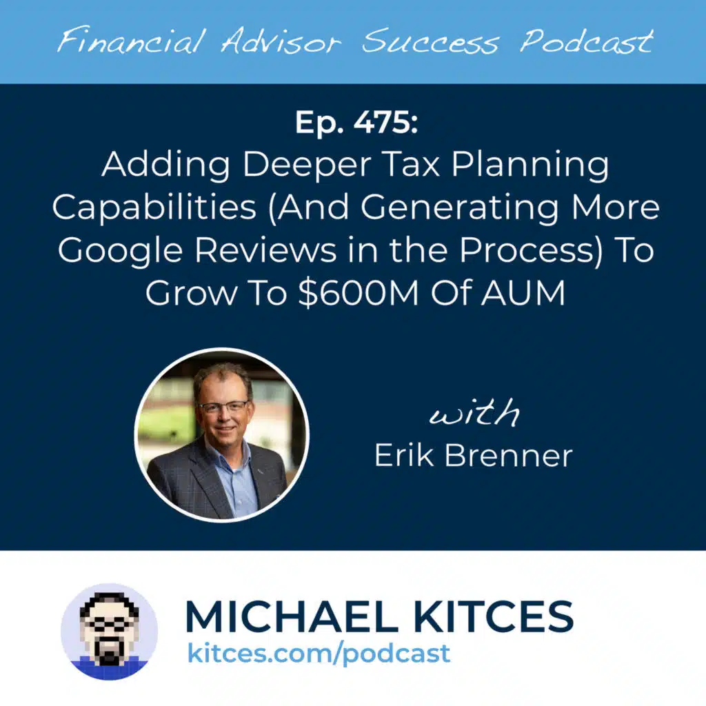 Erik Brenner is the CEO of Hilltop Wealth and Tax Solutions, an RIA based in Mishawaka, Indiana, overseeing approximately $600 million in AUM for 830 client households. Listen in as Erik shares how he doubled his firm's AUM in three years in part by building a comprehensive, three-pronged tax strategy that combines in-house tax preparation, advisor-led tax planning analysis, and outsourced expertise for complex cases. We also discuss why he chose to launch a separate but integrated tax business that is profitable in its own right rather than treating tax prep as a loss leader, how in-person dinner seminars focused on retirement tax strategies drive nearly half of the firm's new clients, and how taking a systematic approach has helped Erik's firm boost the number of Google and other online reviews it receives.