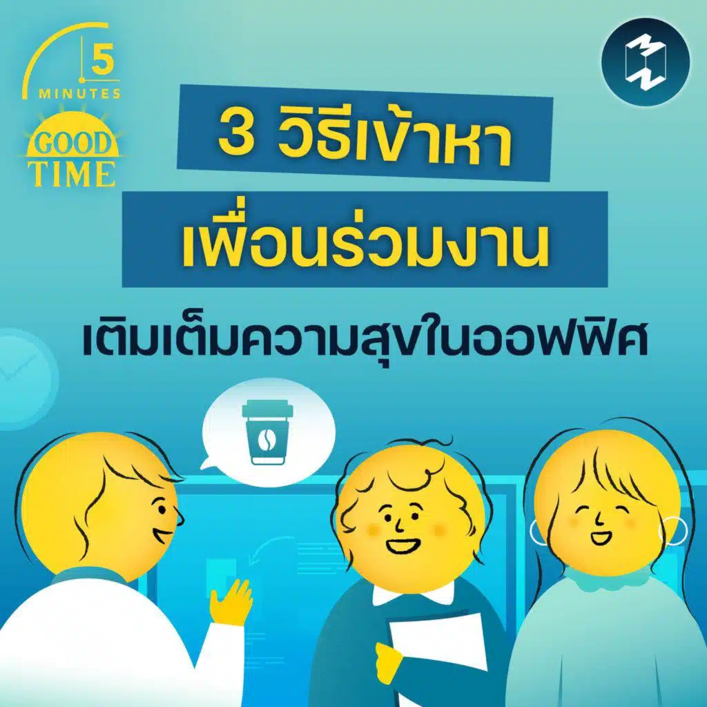 ในโลกของผู้ใหญ่ เพื่อนร่วมงานคือ ‘สังคมใหม่’ คนที่พูดภาษาใหม่ มีวัฒนธรรมใหม่ซึ่งเราอาจจะยังรู้สึกไม่คุ้นชินเมื่อเข้ามาใหม่ๆ แต่ถ้าเราปล่อยให้ความประหม่ากัดกินความกล้าไปนานๆ ท้ายที่สุดอาจเป็นเราเองที่รู้สึกโดดเดี่ยว และไม่เป็นส่วนหนึ่งของสังคมใหม่นี้ได้สักที 3 วิธีเข้าหาเพื่อนร่วมงาน เพื่อขัดความโดดเดี่ยว และเติมเต็มความสุขในออฟฟิศมีอะไรบ้าง? ติดตามได้พอดแคสต ... Show More