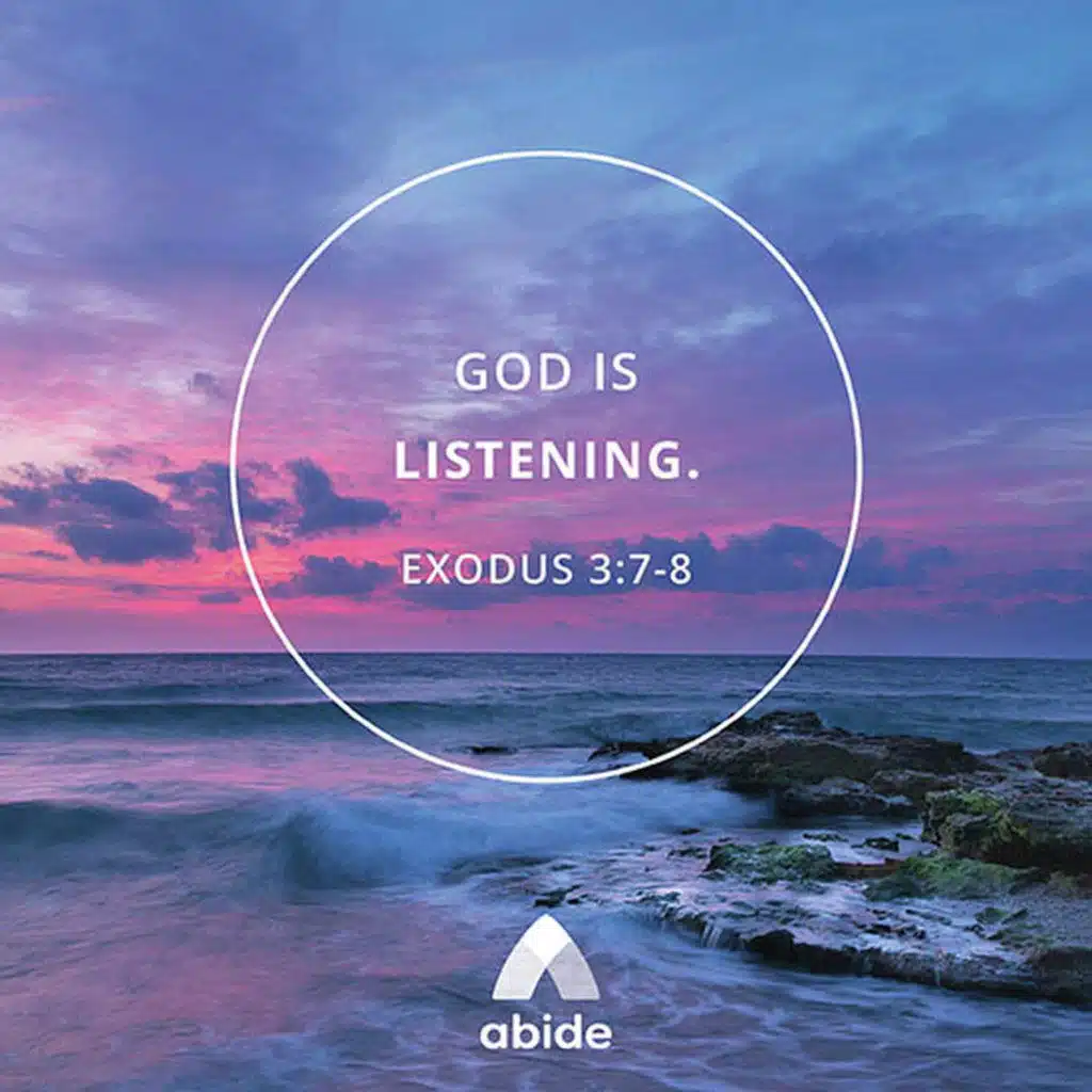 Connect with God — on Abide, a Christian meditation app that provides a biblically grounded place to experience peace and progress in your relationship with Christ. Use this biblical meditation, narrated by Jennifer Clark, to center yourself on the truth in God's word. God hears you and He cares! Meditate on Exodus 3:7-8. Allow the music & nature sounds, deep breathing, prayer, and scripture help you connect with God in a new way.