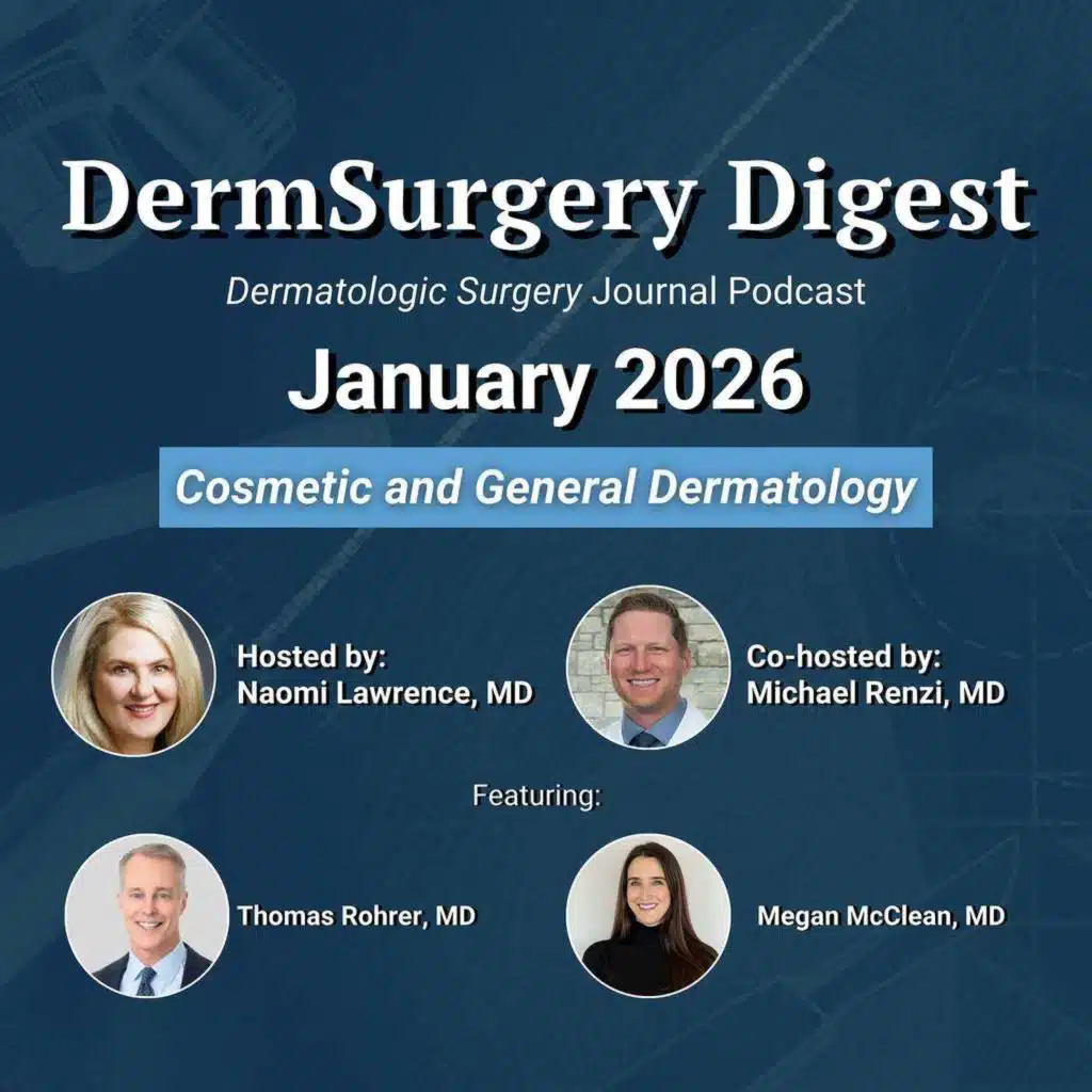 In this episode of the DermSurgery Digest, you’ll hear a summary of the cosmetic and general dermatology articles in the February 2026 issue of Dermatologic Surgery followed by commentary from special guest contributors Thomas Rohrer, MD, and Megan McClean, MD. This podcast is hosted by Dermatologic Surgery Digital Content Editor, Naomi Lawrence, MD, and co- ... Show More