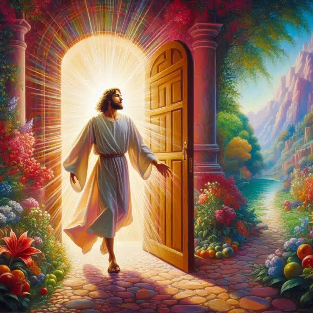 "Le monde divin considère que le travail accompli par les Esséniens, les épreuves traversées, les œuvres posées sont la preuve de la véracité de la Nation Essénienne. Ceux et celles qui se sont préparés pendant toutes ces années doivent maintenant pouvoir passer la porte. Oui, toutes ces années ont été pour vous une préparation et j’espère que vous avez saisi l’occasion et estimez être clairs, forts, sensés, sages et purs. Cette rencontre fut un test, la conclusion d’un examen. Votre attitude, vos pensées, vos sentiments ont été déterminants. Ils ont été l’aboutissement de toute cette période de travail intense. À toutes celles et tous ceux qui ont donné le meilleur d’eux-mêmes, qui n’ont eu que de belles pensées, des sentiments nobles, une très bonne disposition pour que je puisse venir, je dis : soyez bénis, soyez accueillis dans l’amour à la nouvelle porte de la Nation Essénienne. Aux autres, à ceux qui ont eu des mauvaises pensées, des sentiments de discorde, des paroles de critique, je dis : la porte sera fermée."