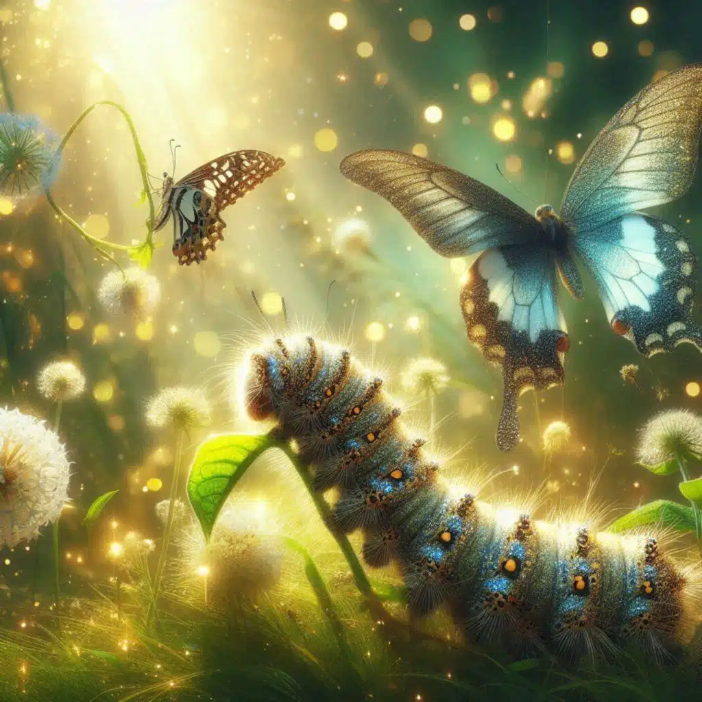 "L’homme doit accepter d’être une chenille et comprendre le processus de transformation exigé. La chenille ne peut pas recevoir la Lumière et vivre en elle. Elle doit prendre le chemin d’être enfermée dans un cocon, coupée du monde pour un certain temps. Dans ce cocon, l’homme aura l’impression que sa vie s’arrête, qu’il est impuissant, rétréci et que ce qui le reliait avec un certain monde s’éteint. En réalité, rien ne s’arrête : l’homme se transforme, développe d’autres sens, d’autres organes, un autre corps. Il sortira de ce cocon comme un papillon et pourra s’envoler, vivre dans plusieurs mondes, danser avec les couleurs et la lumière, découvrir d’autres espaces et d’autres dimensions, voltiger de monde en monde. La transformation de la chenille en papillon est l’image du passage d’une certaine humanité à une humanité essénienne."