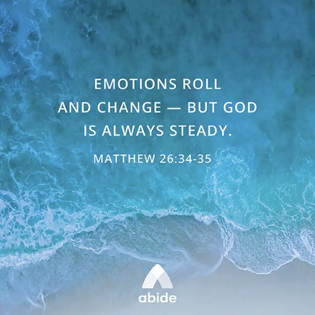 Connect with God — on Abide, a Christian meditation app that provides a biblically grounded place to experience peace and progress in your relationship with Christ. Use this biblical meditation, narrated by Dianne Jackson, to center yourself on the truth in God's word. Can your feelings be trusted? Meditate on Matthew 26:34-35. Allow the music & nature sounds, deep breathing, prayer, and scripture help you connect with God in a new way.