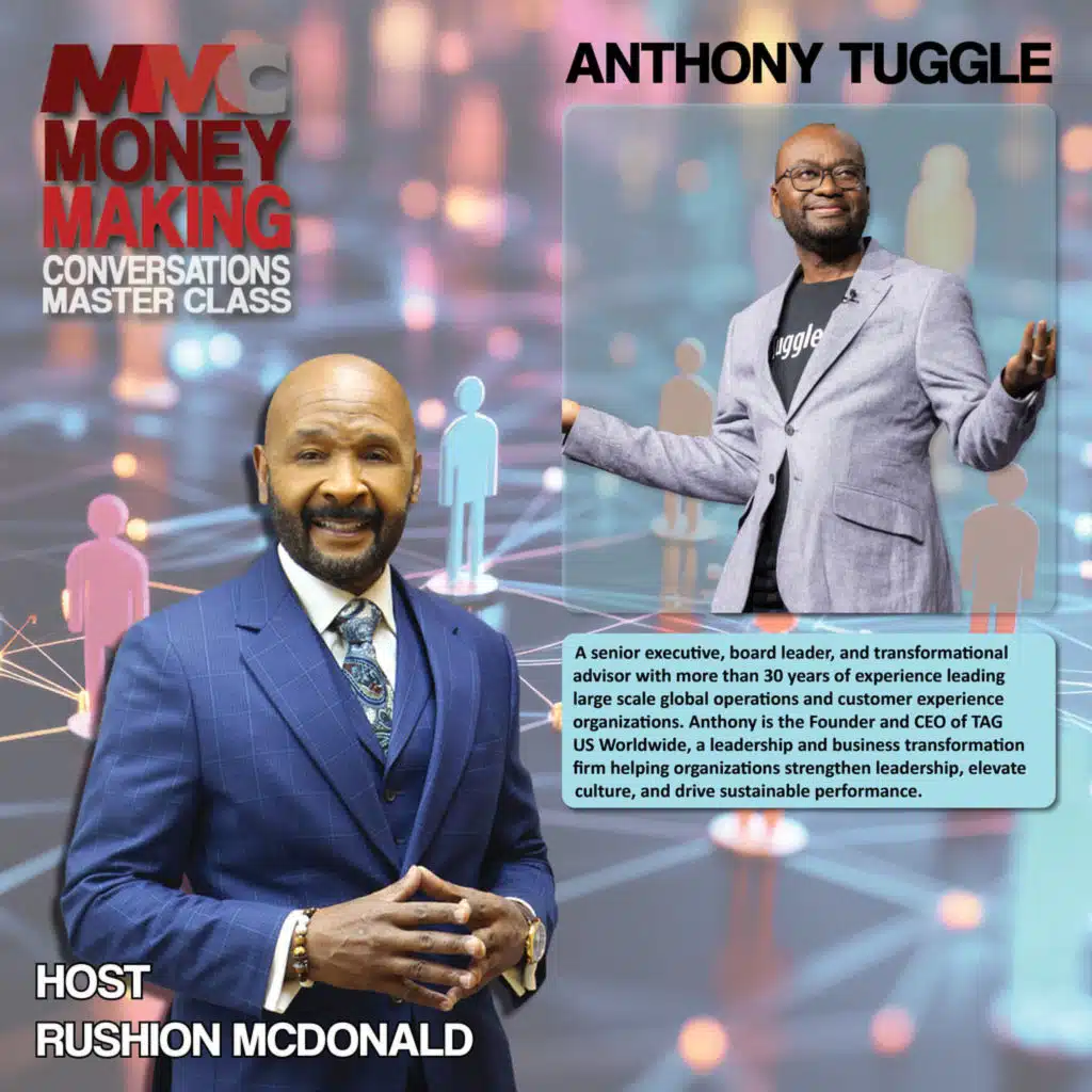 Senior executive, transformational advisor, and founder/CEO of Tag Us Worldwide. With more than 30 years of leading global operations at AT\&T and other Fortune 10 organizations, Tuggle shares lessons in leadership, resilience, corporate success, personal health battles, entrepreneurship, and the importance of emotional intelligence in the AI era.