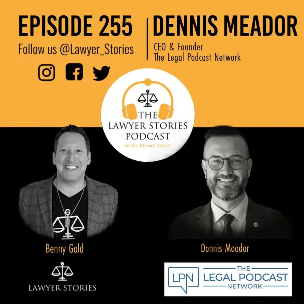 The Lawyer Stories Podcast episode 255 features Dennis "DM" Meador. DM, living in Belize, is the CEO & Founder of the Legal Podcast Network — a platform delivering turnkey podcasting for lawyers ready to build authority, attract ideal clients, and grow with intention.