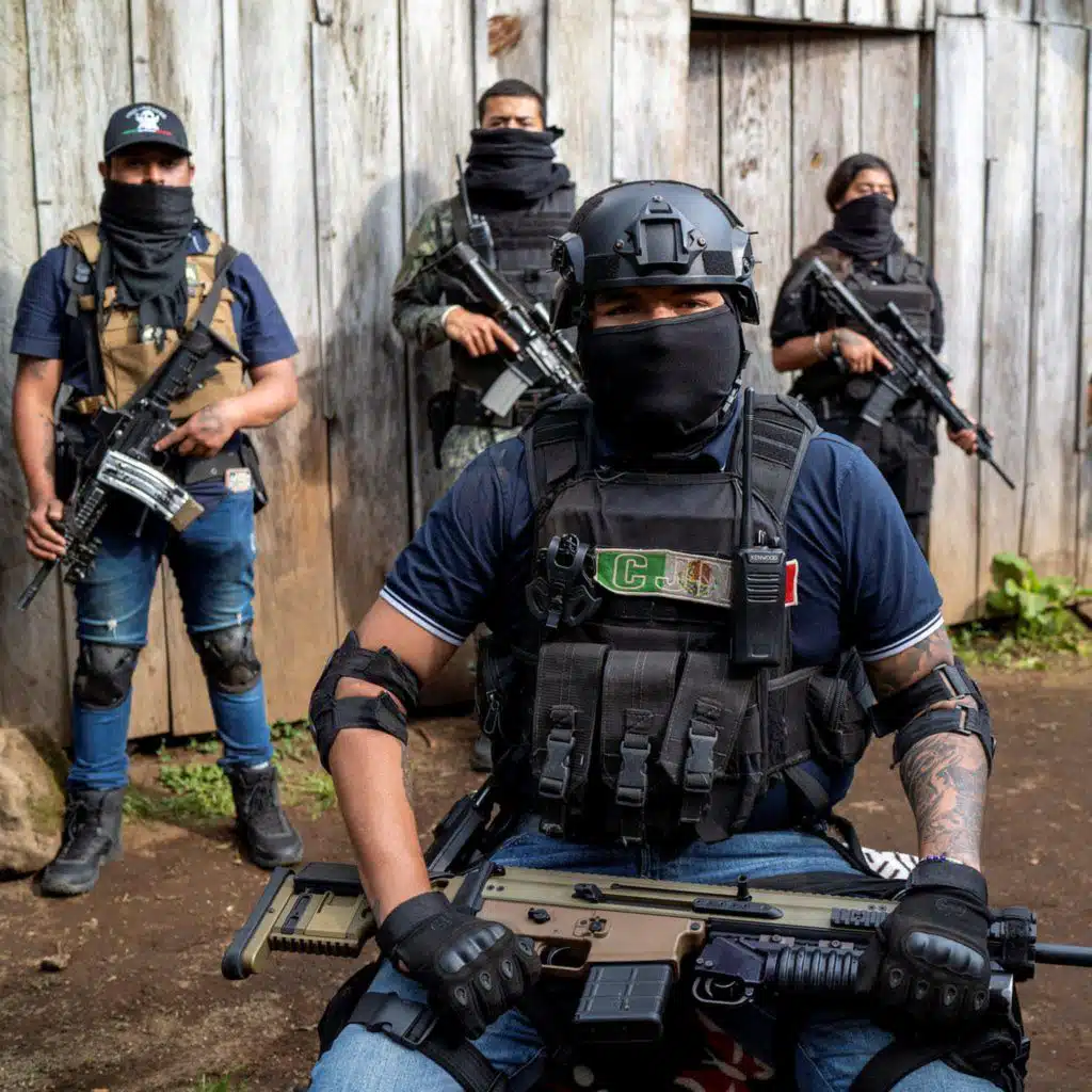 Image Credits: FILE PHOTO: Members of the Jalisco New Generation Cartel (CJNG), led by Nemesio Oseguera, known as “El Mencho,” poses for a photo at an undisclosed location in Michoacan state, Mexico, October 15, 2022. REUTERS/Stringer