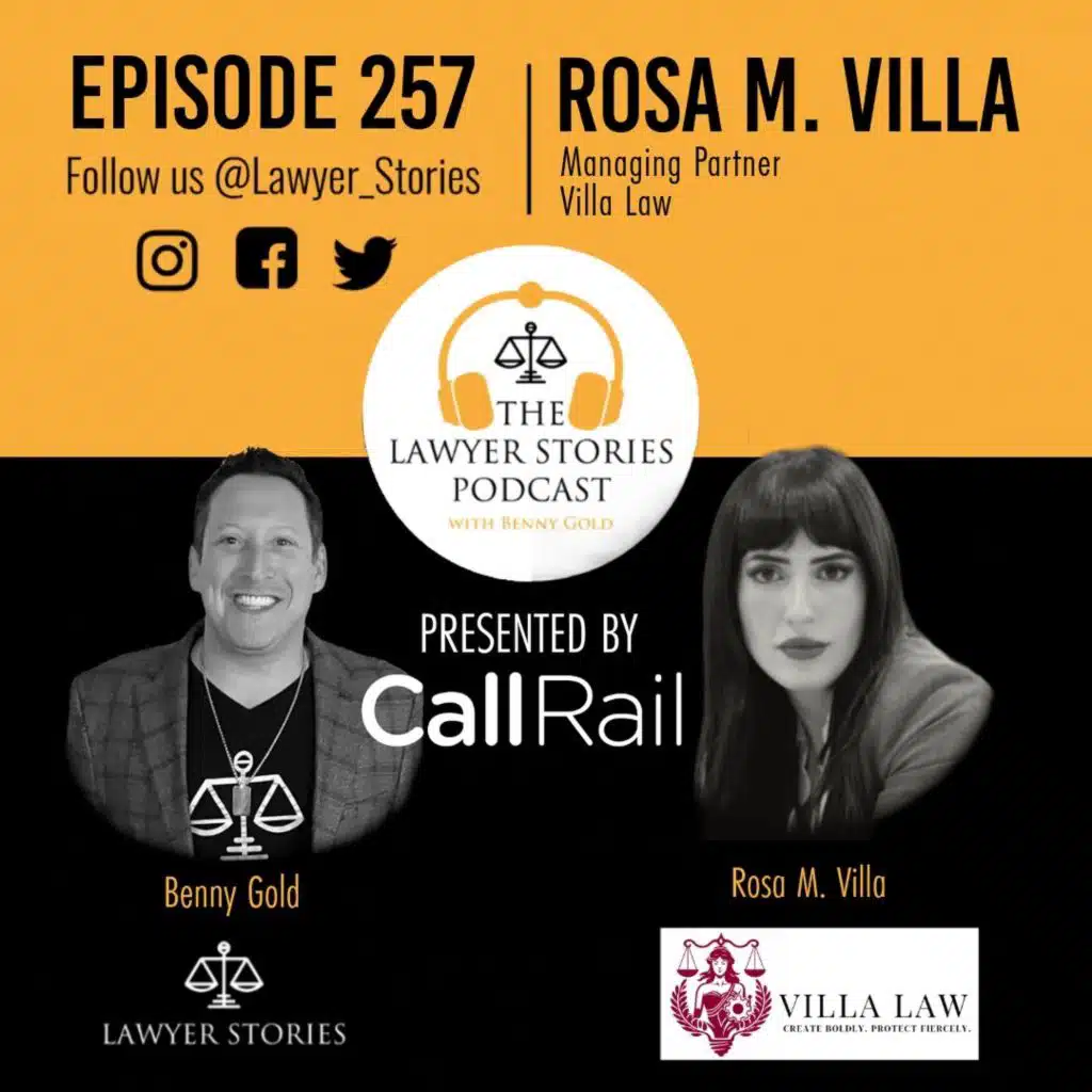 The Lawyer Stories Podcast Episode 257 features Rosa Villa, Founder and Managing Partner at Villa Law, PLLC in Miami, Florida. A University of Miami School of Law graduate, Rosa provides bold, results-driven representation in Intellectual Property, Entertainment, Employment Law, and business contracts.