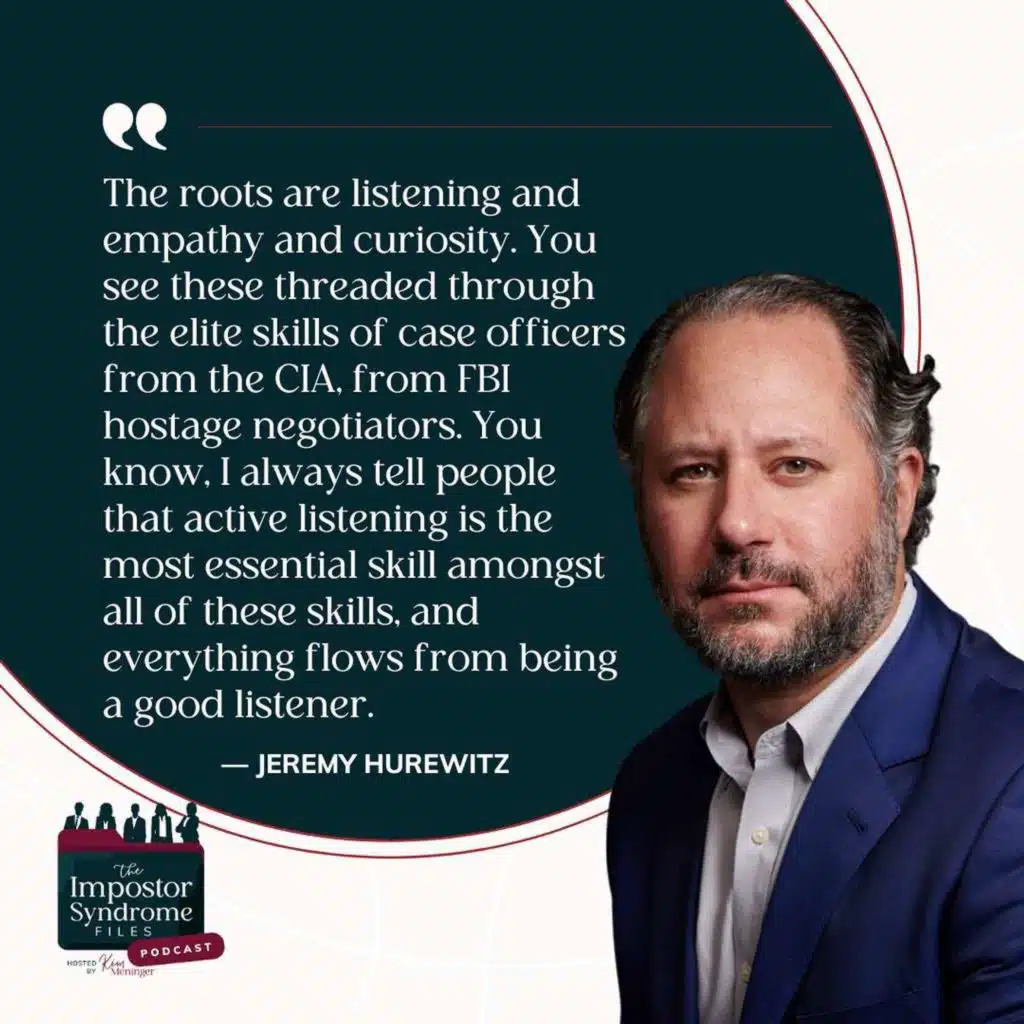 In this episode of The Impostor Syndrome Files, we talk about managing emotional intensity in high-stakes situations. My guest this week is Jeremy Hurewitz, author of Sell Like a Spy and a corporate consultant, who draws on years of working alongside intelligence professionals, such as FBI hostage negotiators, CIA case officers, and special forces, to teach ... Show More