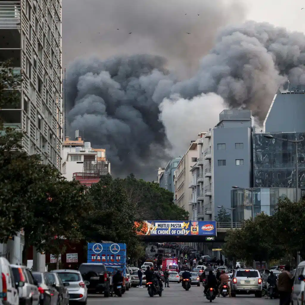 Photo Credit: Smoke rises after an Israeli strike in central Beirut's Bachoura neighbourhood, following an escalation between Hezbollah and Israel, amid the US-Israeli conflict with Iran, in Beirut, Lebanon, 12 March, 2026. Creit: Claudia Greco/Reuters