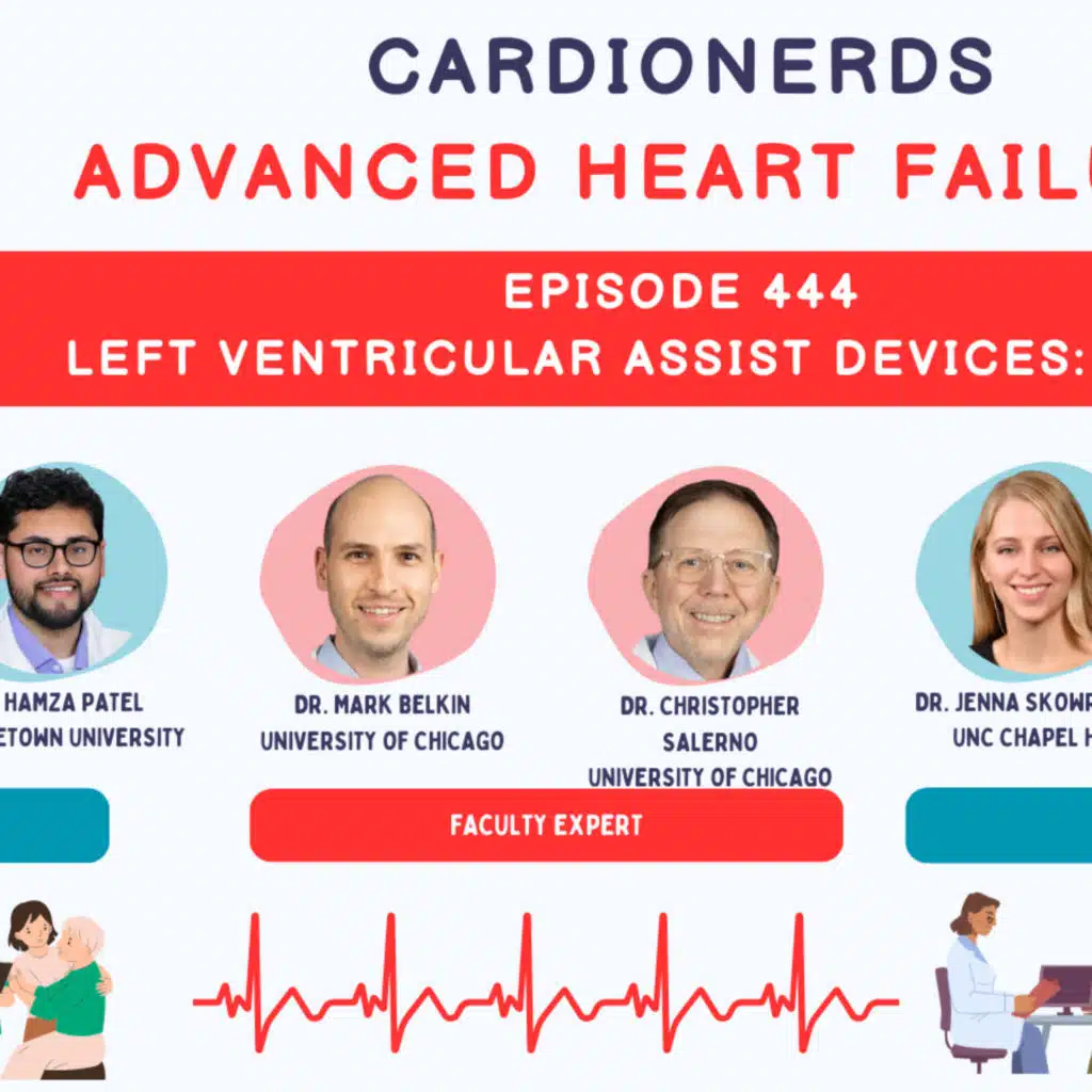 CardioNerds (Dr. Hamza Patel, Dr. Jenna Skowronski, and Dr. Apoorva Gangavelli) discuss advanced heart failure and LVAD management with Dr. Mark Belkin, Advanced Heart Failure & Transplant Cardiologist, and Dr. Chris Salerno, Cardiothoracic Surgeon. They explore the nuances of right ventricular (RV) physiology, perioperative hemodynamic optimization, long-term complications, sensitization and transplant considerations, and the evolving role of GDMT in LVAD patients. This episode highlights the delicate interplay between surgical and medical management in achieving optimal outcomes for patients living with durable mechanical circulatory support.Audio editing by CardioNerds Academy intern, student doctor, Pace Wetstein.