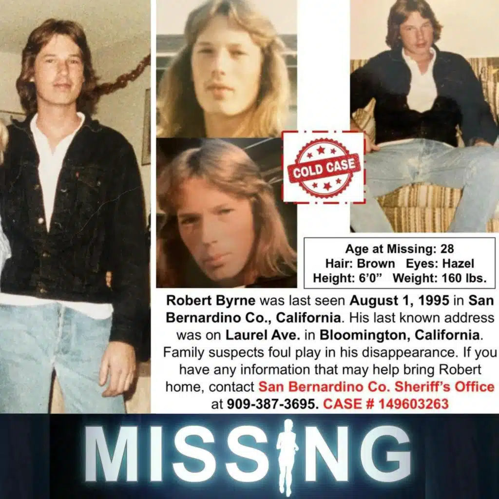 In this new episode, Crawlspace Media's Tim Pilleri and Lance Reenstierna discuss the disappearance of Robert Byrne with his sister Laurie. Robert went missing from San Bernardino, California on August 1st, 1995.