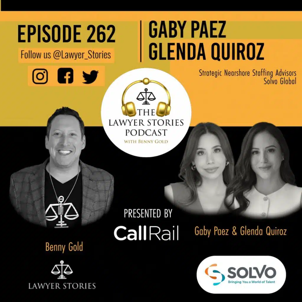 The Lawyer Stories Podcast Episode 262 features Gabriela "Gaby" Paez and Glenda Quiroz, Strategic Advisors at Solvo Global.