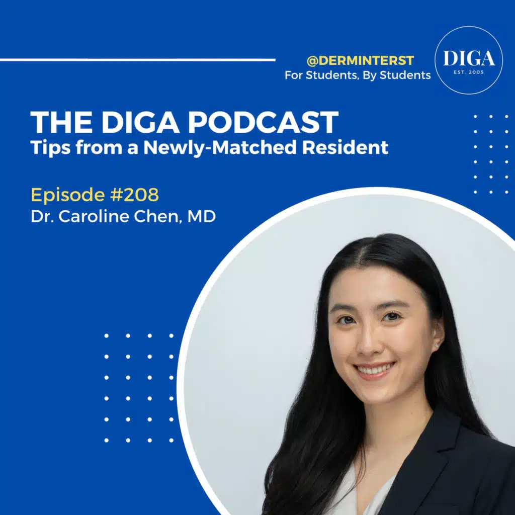 In this episode, we talk with Caroline Chen, MD, a recently matched dermatology resident. Caroline is graduating from Columbia University Vagelos College of Physicians and Surgeons this May and successfully matched into dermatology at Columbia, along with a transitional year at Memorial Sloan Kettering Cancer Center. Listen in as Caroline walks us through her journey to dermatology, how she got involved early on, and why she chose to apply without a research year. We also learn more about her experience with social media and how she balanced her interest in educational content creation with her medical career. We hope you enjoy!