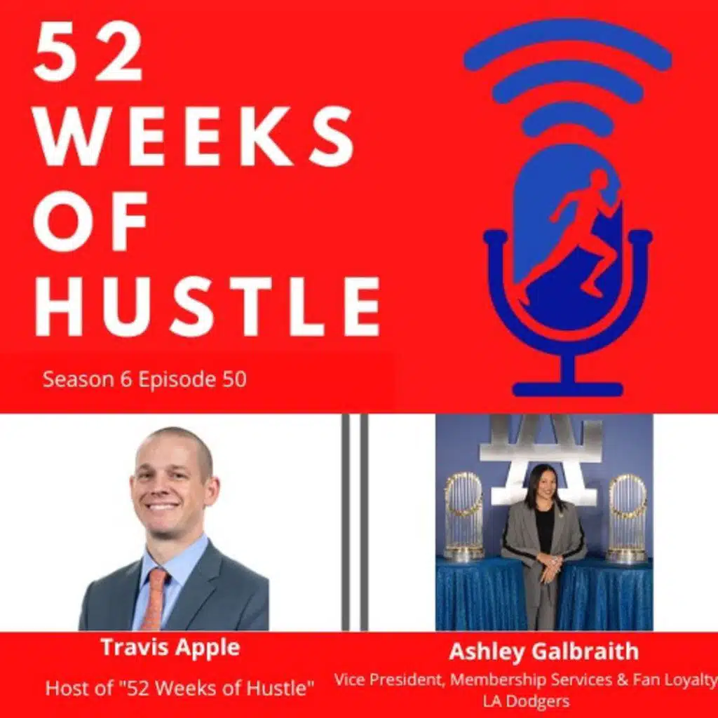In Season 6, Episode 50, Travis sits down with Ashley Galbraith, Vice President of Membership Services and Fan Loyalty for the LA Dodgers. Ashley went from being a D1 athlete to having success in the NBA, MLS, and MLB. Tune in to hear how she has taken key learnings early on and still applies them to her work every day.