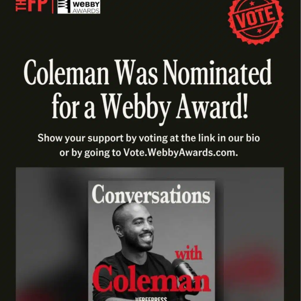 Coleman here, sharing some exciting news: Conversations with Coleman has been nominated for a Webby Award. This is the internet’s highest honor, and we need your help to ... Show More