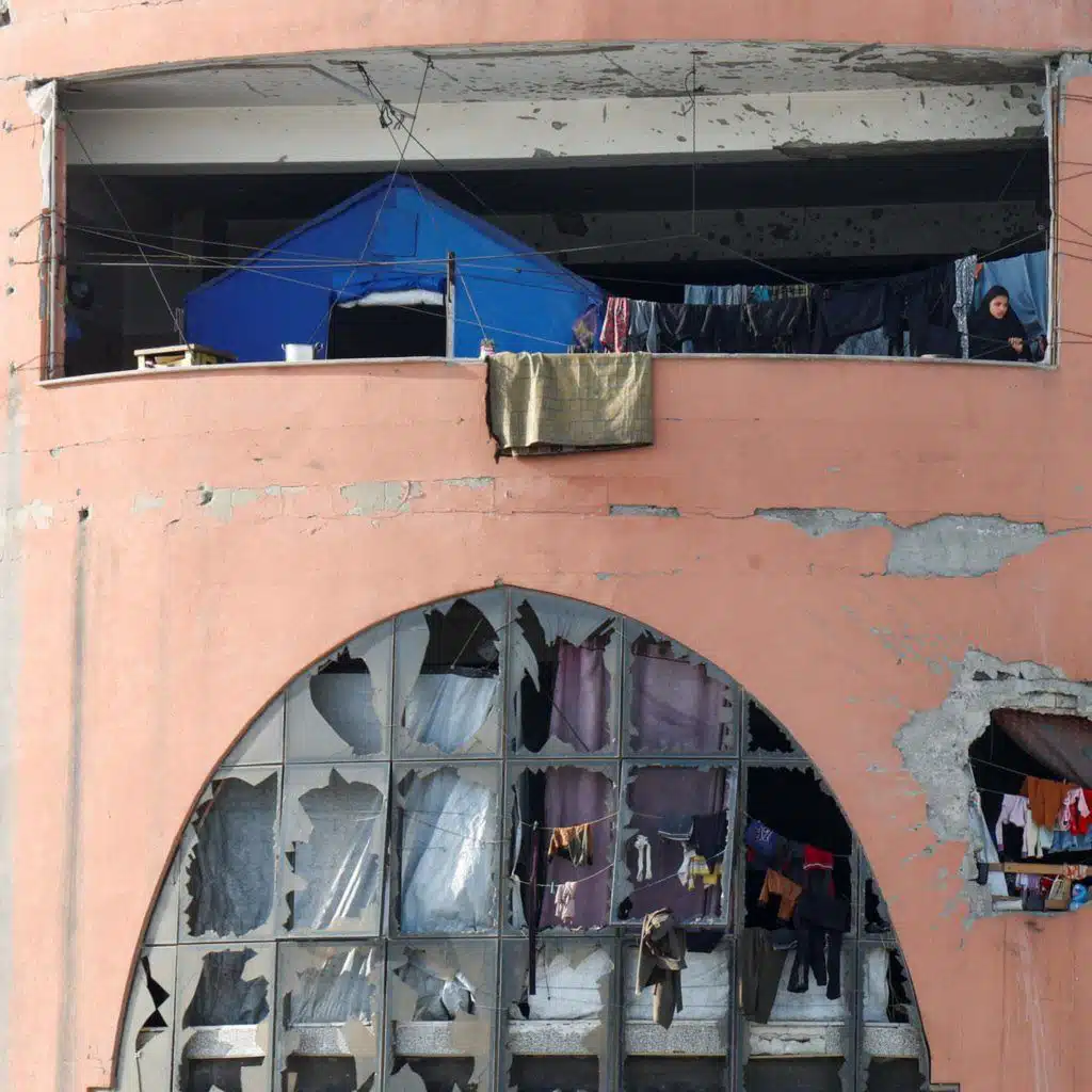 Photo credits: A displaced Palestinian woman stands on a balcony inside a building damaged during the war at Al-Aqsa University, now used as a shelter, in Khan Younis, southern Gaza Strip, April 5, 2026. Photo: Reuters/Haseeb Alwazeer.