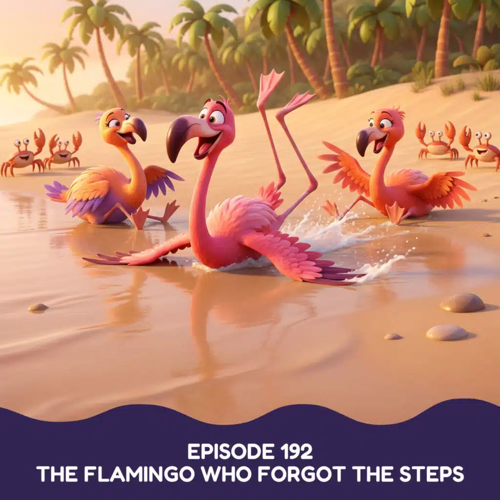 A wish fluttered in on a gentle breeze, dreamed up by Lois, a sweet three-year-old all the way from sunny Perth, Australia! She wished for a story filled with graceful dancers and sparkling waves…and her wish has come true! Tonight, we journey to a golden beach where the most elegant flamingos perform their nightly dance. But when a giant wave arrives and throws everything off course, one flamingo learns that being different can be wonderfully magical! Get ready to slide, spin, and discover the joy of unexpected moments. 🧡