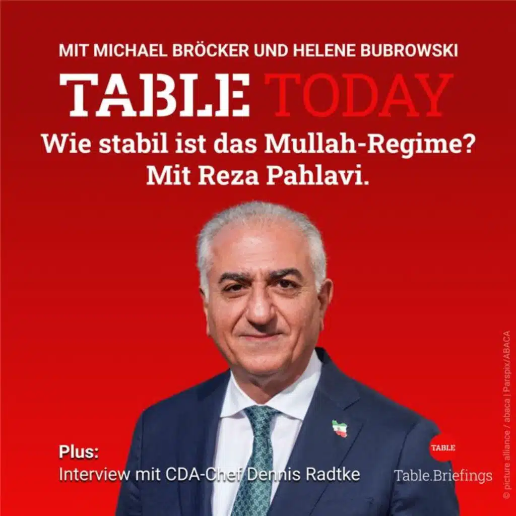Reza Pahlavi hat es als „verpasste Gelegenheit“ bezeichnet, dass Friedrich Merz ihn nicht in Berlin empfangen hat. Der älteste Sohn des früheren iranischen Schahs zeigte sich verwundert, „jemanden nicht zu Wort kommen zu lassen, der für Millionen von Iranern spricht“. Er sei enttäuscht, weil Merz noch kurz nach Beginn der israelisch-amerikanischen Angriffe auf den Iran Ende Februar „sehr entschlossen war, als er sagte, dass ein Regime, das diese Art von Gewalt gegen das Volk ausübt, seine Legitimität verloren hat“, sagt Pahlavi im Gespräch mit Markus Bickel vom Security.Table. [24:33]
