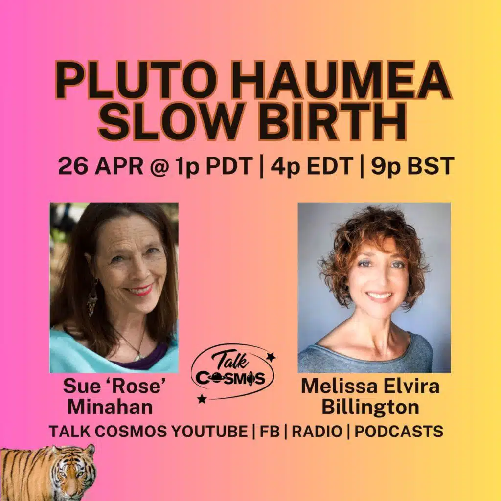 Journey with Talk Cosmos on Sunday, April 26, at 1:00 PM PDT to join host Sue Rose Minahan and Australian astrology guest Melissa Elvira Billington for a potent fireside chat: "PLUTO HAUMEA SLOW BIRTH."