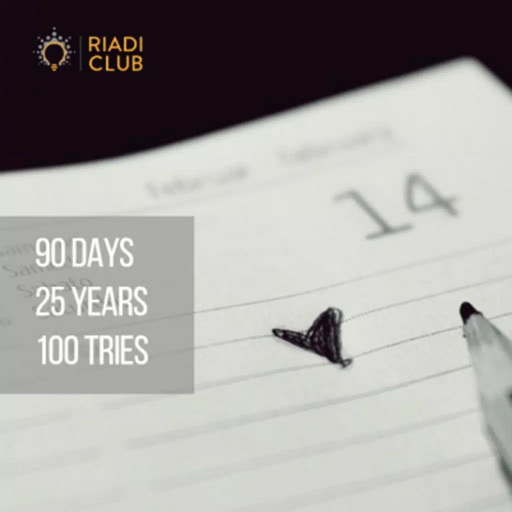 Learn more about the 90 Days, 25 Years, 100 Tries approach to your business at http://podcast.riadi.me/71