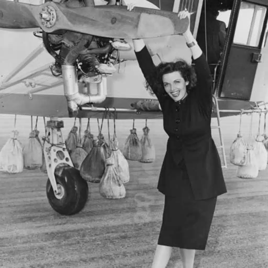 Our long-running series on the women in the life of the infamous aviator/filmmaker continues with a look at Hughes’ professional and personal relationship with Jane Russell, which began in 1940 when Hughes randomly pulled a photograph of the 19 year-old out of a pile, and lasted for most of her film career.