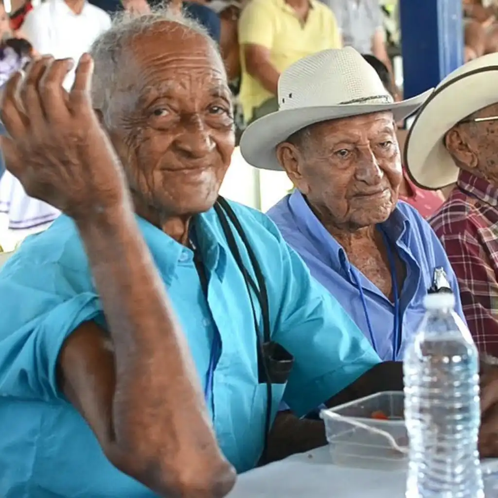 (Image: A group of older men sitting together at an event, Costa Rica. Credit: Rafael Rojas)