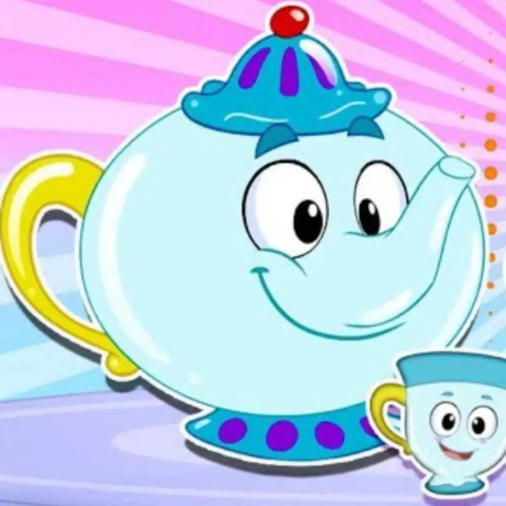 انا انا انا ابريق الشاي ايدي كده بوزي كده ... اصب الشاي وارجع كده واعرف برضه يا كتاكيت أحكي حواديت كان يا مكان فسطان لونه أحمر لبساه أمورة اسمها مرمر وقطط رومي وديك فيومي وانا وانتم قاعدين نتنقور حاجة ظريفة وعال العال لكن فجأة حصل زلزال أتاريه الفيل أبو زلومة عمال يرقص في الأدغال جوة الأدغال الهندية، الفيل بيغني أغنية ويقول أنا وأنت يا زلومتي نشبه سوا أبريق الشاي ابريق الشاي ابريق الشاي انا انا انا ابريق الشاي ايدي كده بوزي كده اصب الشاي وارجع كده واعرف برضه يا كتاكيت أحكي حواديت كان في بلاد العجايب حفلة شاي لتلاتة حبايب الدبة والبوبي والنملة والتعلب برة ملوش نايب التعلب قدامهم فات وفي ديله سبع لفات، كل الحفلة قالوا للتعلب ابعد عنا عشر يردات تعلوبة قال فيها لأخفيها واقلب فناجينها وكراسيها وعشان أغيظكم وأجننكم راح أخبي أبريق الشاي ابريق الشاي ابريق الشاي أنا أنا أنا ابريق الشاي ايدي كده بوزي كده اصب الشاي وارجع كده واعرف برضه يا كتاكيت أحكي حواديت